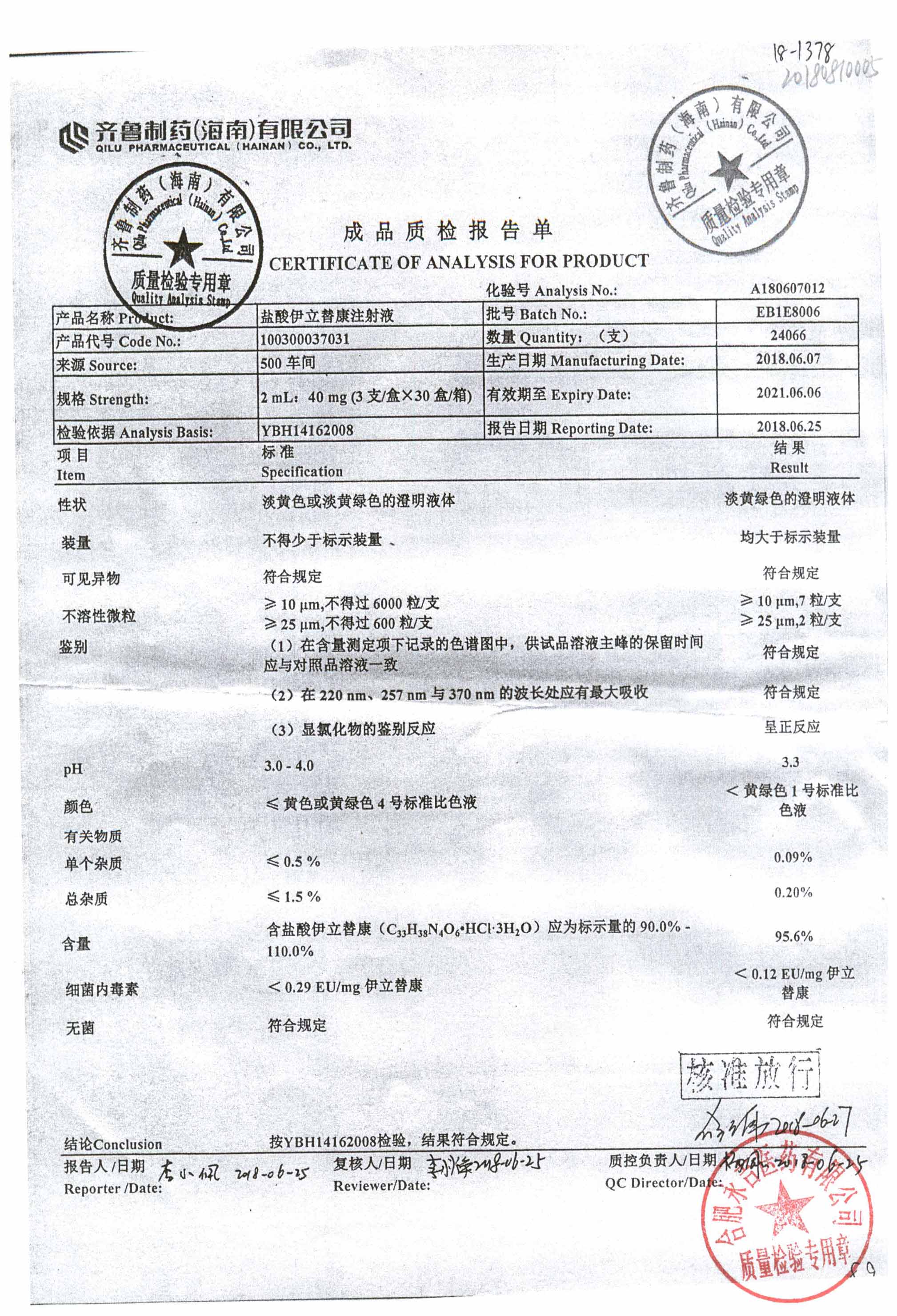 名稱 規(guī)格 批號(hào) 藥檢報(bào)告