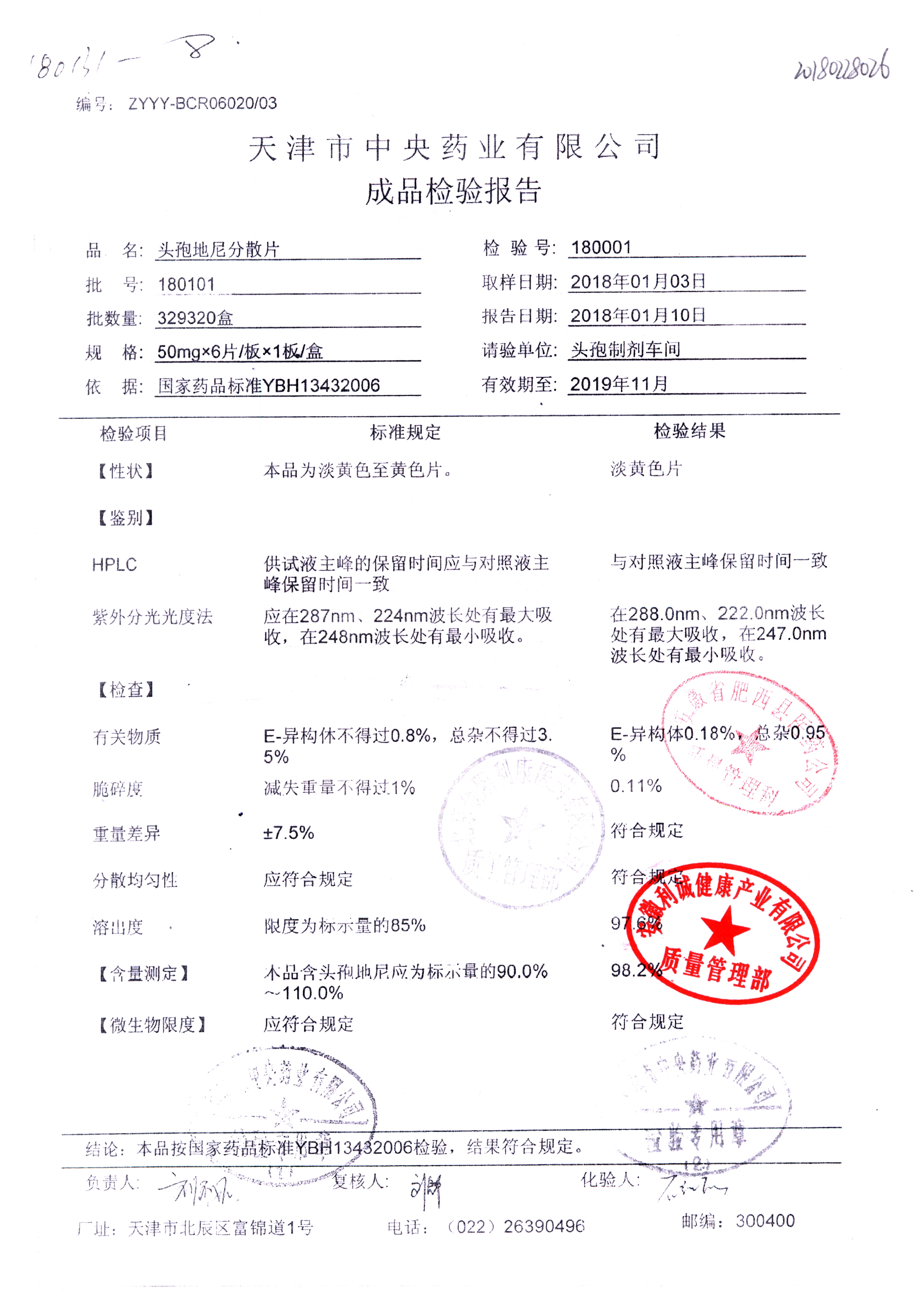 | 頭孢地尼分散片 | 50mg*6s | 180201 | 查看詳情 |
