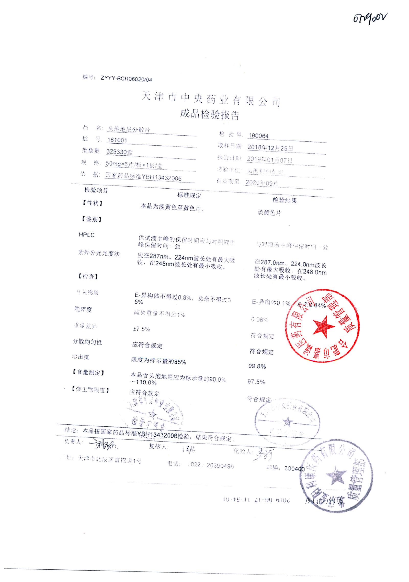 | 名稱 | 規(guī)格 | 批號 | 藥檢報告 |
